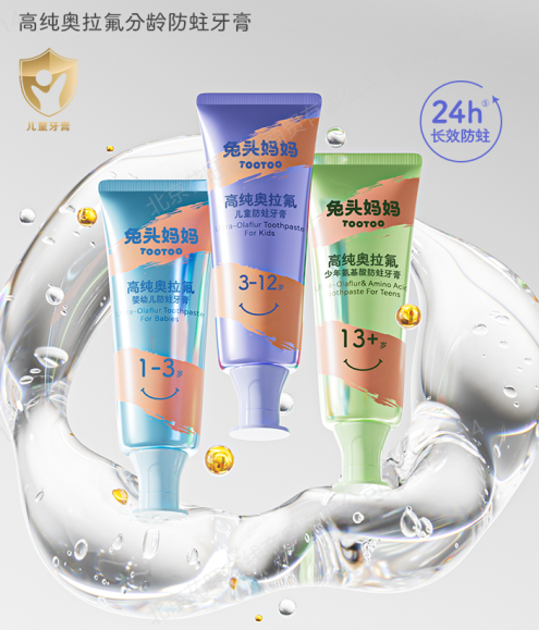 在儿童口腔护理用品研发上,兔头妈妈针对不同年龄段孩子的口腔、人体工学特点研发,旨在针对性、引导性地解决口腔护理问题,深耕新一代奥拉氟防蛀技术。应对儿童肌肤护理问题,其践行「分龄+仿生」领跑中国儿童护肤科学新思路,自研仿生成分Bio-MFGs®仿生乳脂球和Bio-AMPs®仿生胎脂肽均已落地应用,对比上一代植物提取护肤成分,有更好的生物吸收利用率,以及在保湿、舒缓、修护上展现出更强的功效。目前,旗下相关产品常年位于各平台细分榜单前列。