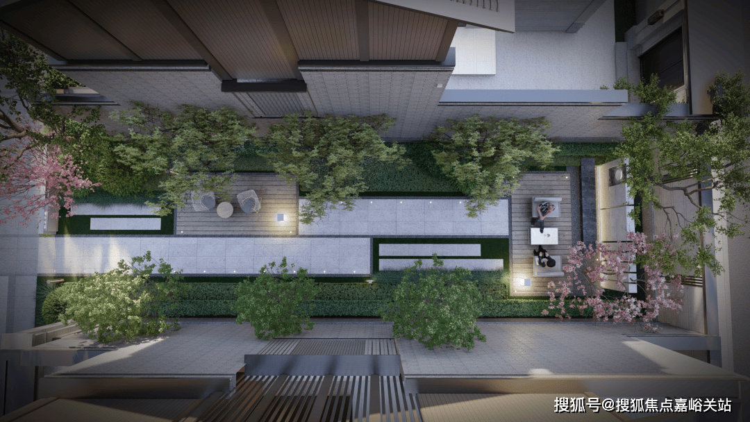 加之建筑顶部的金冠起伏,与景观河交相辉映,串联成金色丝带东西贯通,更是凸显了本项目的高标准、高品质的居住体验。