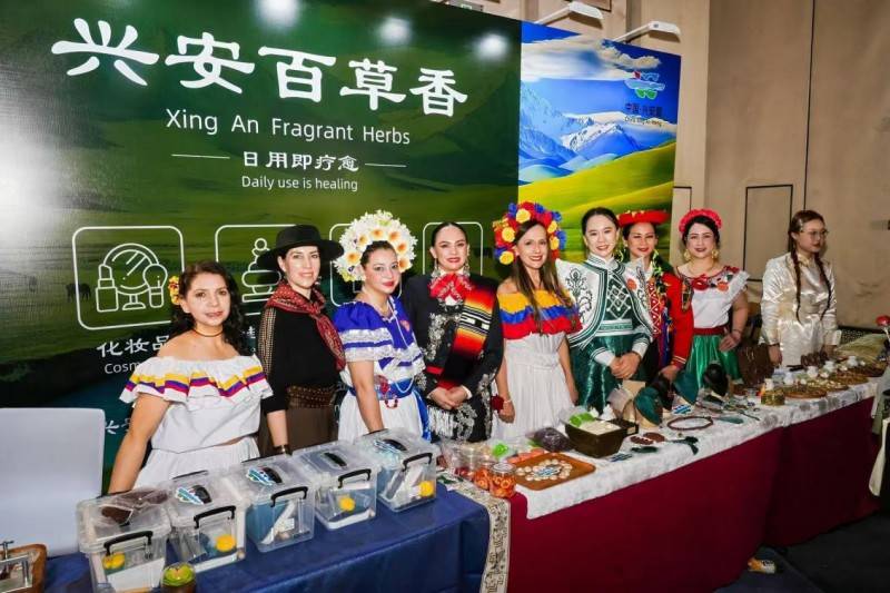 北疆灵秀,药食同源的千年馈赠。兴安盟的沃土孕育了苍术、黄芪等道地药材,其药用价值早在《本草纲目》中便有记载。闫氏家族自清代起便以草原药材入药,第三代传承人闫海杰深耕中草药领域二十余年。活动现场,专门设置有手工制香的DIY体验,精巧的手工师傅一边制作“喜字”药香珠,一边向使节夫人们介绍:“我们以马奶酒祛毒、低温发酵锁活,历经36道工序,最终让药效通过皮肤渗透与气息滋养的双重路径作用于身心,效果非常好。”