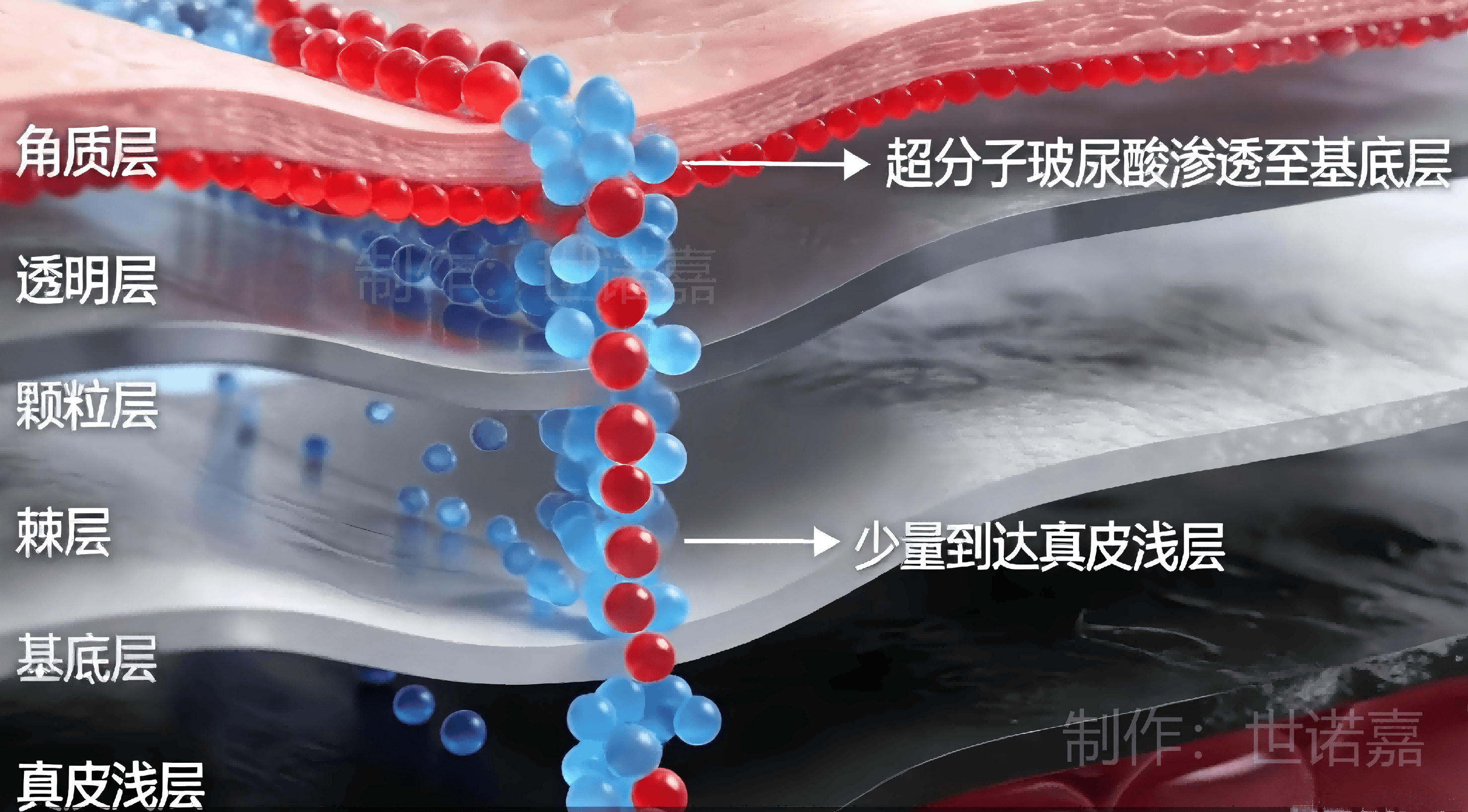 但实现该目标面临根本挑战:皮肤屏障——角质层通常只允许小分子(500道尔顿)亲脂物质通过。而HA分子量极大(超1万道尔顿)且亲水,与传统经皮渗透条件完全不符,故外用HA只能停留于表面保湿,难以抵达真皮层发挥生物活性。